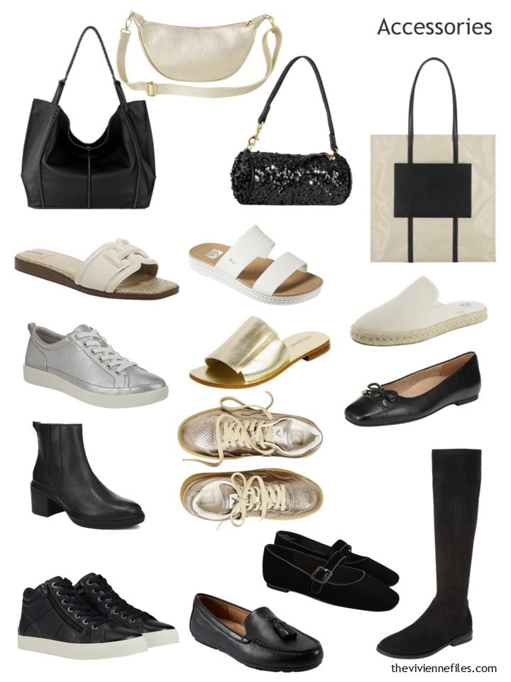Dressy accessories are EVERYWHERE right now, and it’s possible to find everything you need (shoes, bag, jewelry, maybe a scarf?) without breaking the bank. Remember that you won’t be wearing these things all that often, and frequently they’re only worn in the evening, in dark-ish environments. Plunking down a fortune for a pair of dressy shoes that will be worn infrequently isn’t a good use of your hard-earned money!