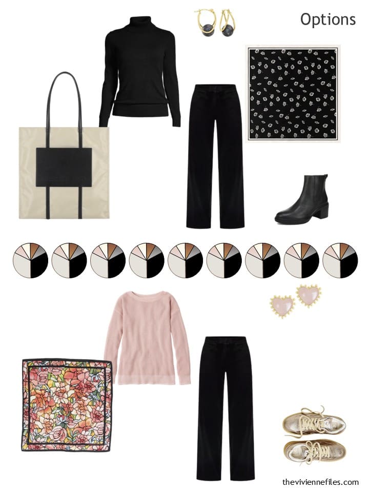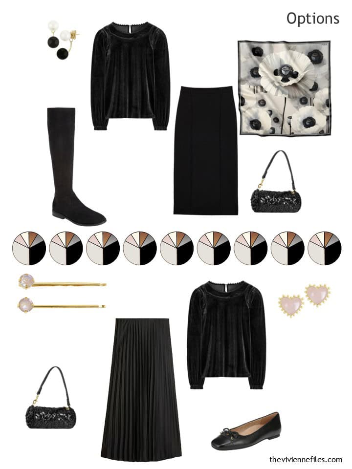 Today’s heroine is getting a couple of velvet pieces, which can be worn with other fabrics to instantly bring a festive feeling to any day. And I’m also giving this lovely lady a couple of cashmere sweaters – another instant upgrade for anything you wear. Yes, they’re expensive. If cared for carefully, cashmere can have a really LONG lifespan; my black cashmere turtleneck was purchased in Milan in 1999…